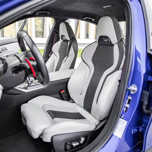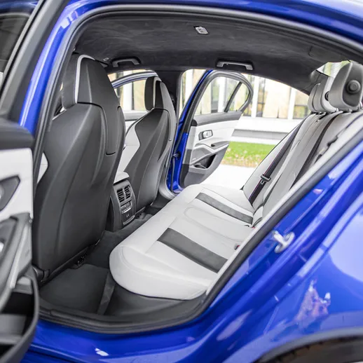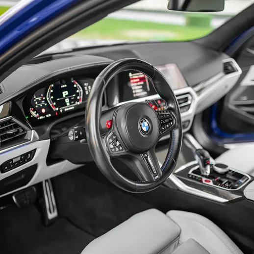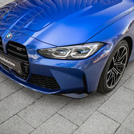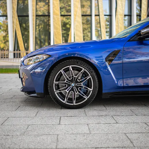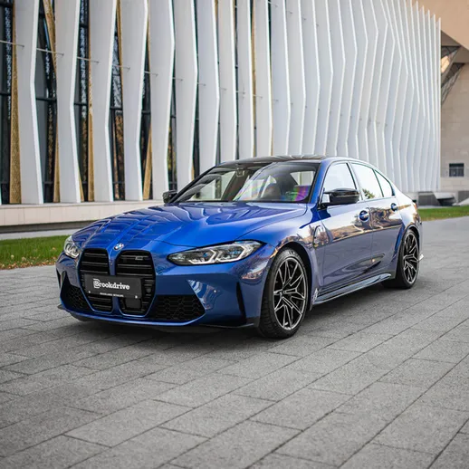 BMW M3 Competition (G80) – спортивный седан в легендарном синем цвете Portimao Blue. Версия Competition сочетает динамику гоночного болида и комфорт премиум-седана — идеальный баланс драйва и стиля.