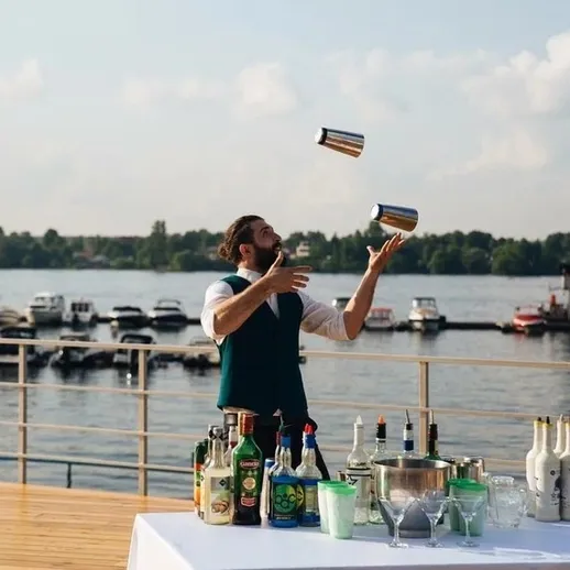 Хотите удивить гостей по-настоящему ярким номером? Бармен-шоу — это не просто разлив коктейлей, а захватывающее представление с жонглированием бутылками, ловкостью и стилем. Бармен приедет за час, подготовит всё и покажет уникальную программу, в ходе которой приготовит 5 авторских коктейлей. Выбирайте формат: сольное, парное или с интерактивом для гостей. Одежда бармена подбирается под стиль вашего мероприятия. Это будет взрыв эмоций и вкуса.
