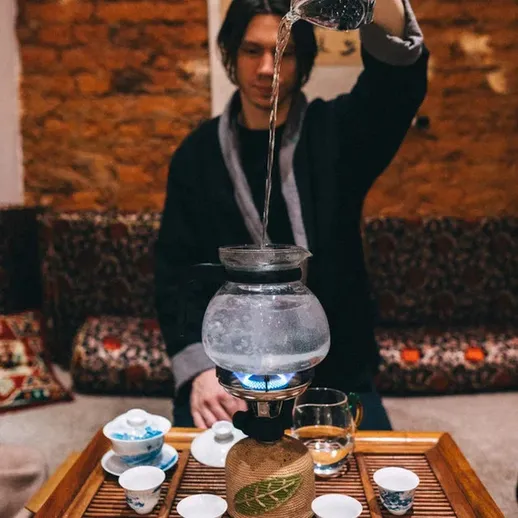 Перенеситесь в VII век и станьте свидетелем древнего ритуала. Чайная церемония Лу Юй — это зрелищный способ варки чая на открытом огне, который подарил нам легендарный чайный мастер. В отдельной комнате, с благовониями и мастером, вы наблюдаете за процессом, а затем пробуете чай, вкус которого при варке раскрывается иначе, чем при обычном заваривании. На выбор — пуэрные камни, белый чай или выдержанный шен-пуэр. Идеальный формат для семейной встречи или дружеского вечера.