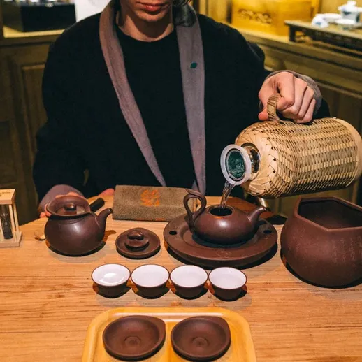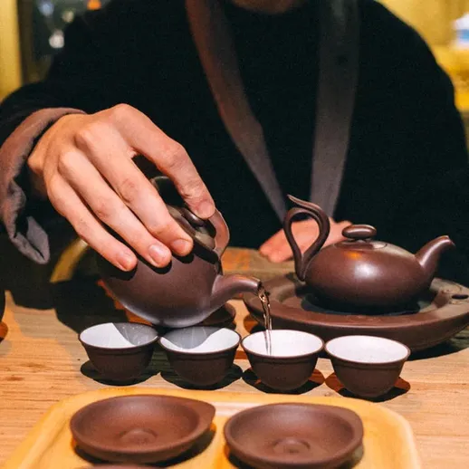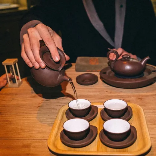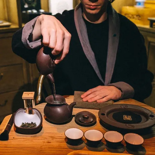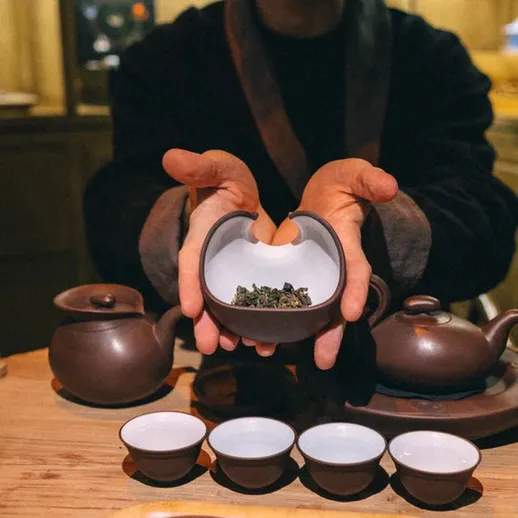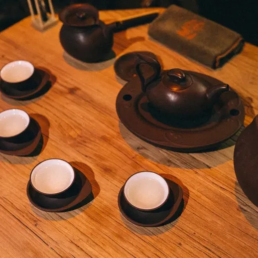 Тайваньская церемония Сяо Ху Фан — это утончённый ритуал, где японская точность встречается с яркостью тайваньского улуна. Всё строго регламентировано: положение предметов на столе, время заваривания, количество проливов. Чай заваривается до 5 раз, и каждая заварка — насыщенная, глубокая, полная вкуса. В отдельной комнате, с мастером и благовониями вы погружаетесь в процесс, который идеально подходит для дружеской встречи или делового общения. Это не просто чаепитие, а целый ритуал, объединяющий людей.