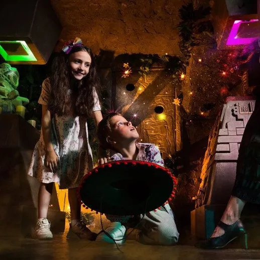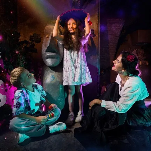 Вместе с Фридой ребята отправятся в красочный мир Мексики, чтобы помочь семье Ривера! Мигель потерял золото, необходимое для строительства музыкальной лавки, и без юных искателей приключений не обойтись. 60 минут путешествия, загадок и волшебства в компании актёра-аниматора. Это шанс погрузиться в атмосферу любимого мультфильма и почувствовать себя частью семьи Ривера.