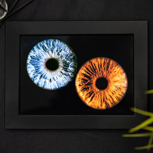 Оригинальность, созданная природой — узор вашей радужки неповторим, как отпечаток пальца. Подарите себе или близким этот уникальный рисунок в виде стильной интерьерной картины или аксессуара. Всего за 20 минут в уютной студии вы получите готовое фото: в деревянной рамке А4 или 13×18 (можно собрать несколько радужек), на кулоне или браслете. Это не просто подарок, а частичка души, запечатлённая навсегда.