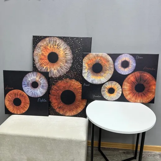 Ваши глаза неповторимы — как и этот узор, который больше не повторится ни у кого. Перенесите магию своей радужки на холст и превратите её в произведение искусства. Четыре размера на выбор — от 30×40 до 60×90. Съёмка, обработка, печать на холсте и натяжка на подрамник — всё включено. Это не просто картина, а ваш личный, глубокий и очень личный портрет, созданный природой.