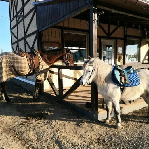 В программу включена экскурсия по ферме, прогулка для взрослого на лошади или для ребёнка на пони, продолжительностью 25 минут.