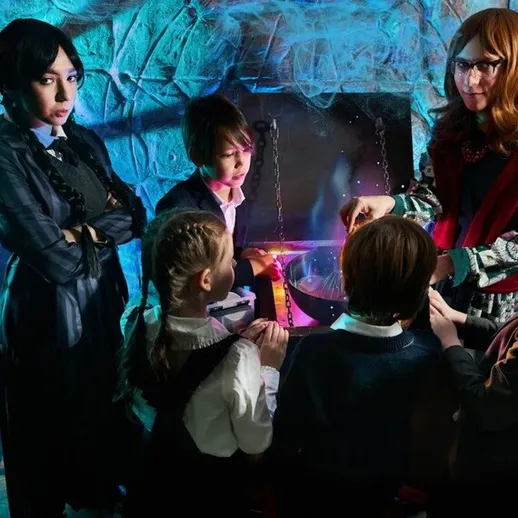 Уэнсдей снова задумала побег! На этот раз — в семейное поместье Аддамсов, пока родители в отъезде. Но замок надёжно охраняется, и ей нужна ваша помощь. Вас ждёт 60 минут мистического квеста по мотивам любимого сериала: тайны академии Невермор, загадочные персонажи, сложные головоломки и неожиданные повороты. А актёр-аниматор в роли Уэнсдей сделает приключение ещё ярче. Справитесь ли вы, чтобы остаться незамеченными?