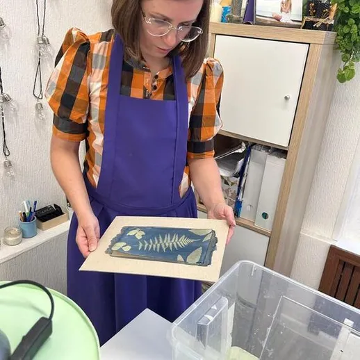Цианотипия — это старинная техника фотопечати XIX века, которая превращает свет и химию в искусство. Вы создадите ботанические постеры, открытки или флажки с неповторимыми оттенками «берлинской лазури». Можно принести свою вещь из натуральной ткани и подарить ей вторую жизнь. Под ультрафиолетовой лампой произойдёт магия: композиция из листьев и цветов проявится насыщенным синим цветом. Это идеальный способ отвлечься от работы, узнать новое и создать уникальный предмет декора.