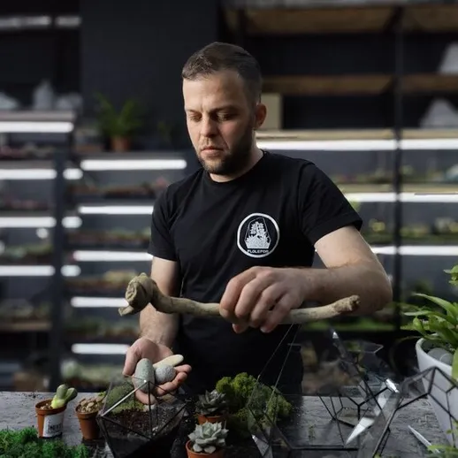 С нами вы узнаете историю флорариумов, принципы построения композиции. Научим вас правильно подбирать материалы и растения, а также ухаживать за готовым изделием.