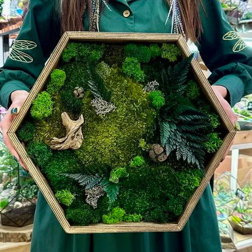 Приглашаем вас в мир природной гармонии: на мастер-классе вы создадите уникальное интерьерное панно из стабилизированного мха, ягеля, коряг и шишек. Работа с живыми фактурами успокаивает, вдохновляет и переносит в лесное пространство прямо в центре города. В уютной группе до 6 человек, под руководством мастера, вы соберёте композицию на деревянной основе — готовый элемент декора, который будет радовать вас долгие годы.