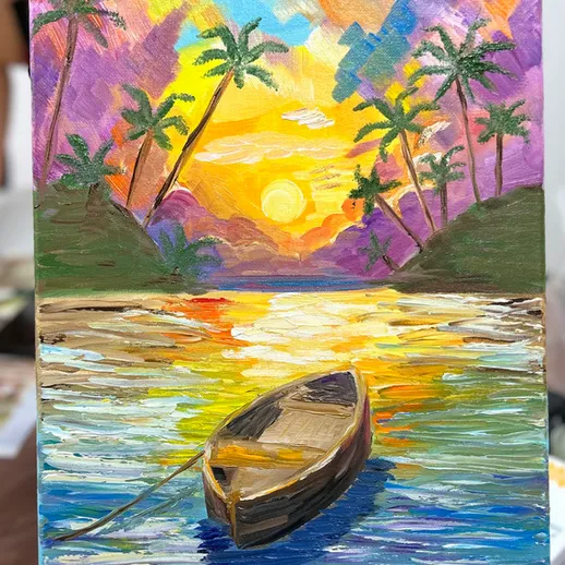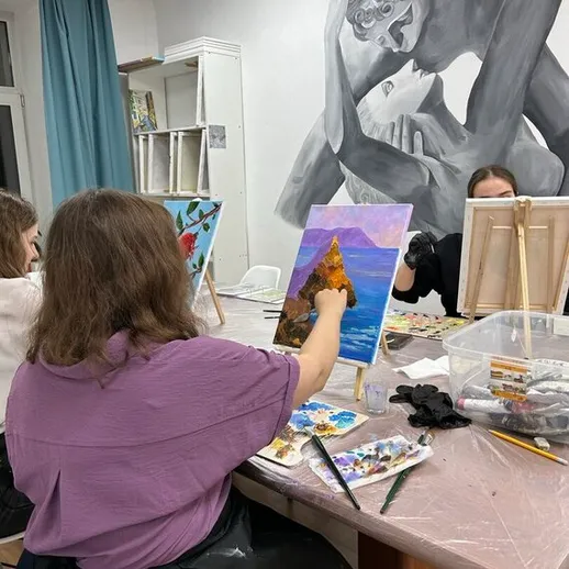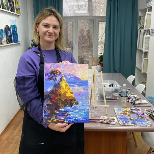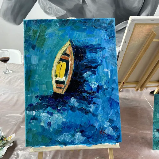 Станьте художником за один вечер! Вы напишете свою первую картину на холсте (30 × 40 см), используя профессиональные материалы (краски, кисти, палитру и др.), - всё включено в стоимость. Опытные преподаватели помогут на каждом этапе, а готовую работу можно забрать сразу или оставить сушиться в студии.
