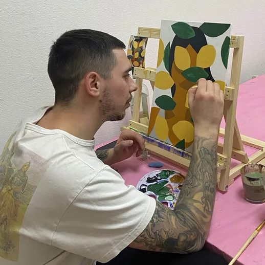 Порой круговорот ежедневных дел так затягивает, что времени на себя остается мало, мы забываем о своих потребностях, желаниях и отдыхе. Если вы устали от накопившихся дел и хотели бы расслабиться, мы предлагаем вам провести время в нашей уютной студии, где вы сможете выплеснуть все ваши накопившиеся эмоции на холст, слушать любимую музыку или творить в тишине.