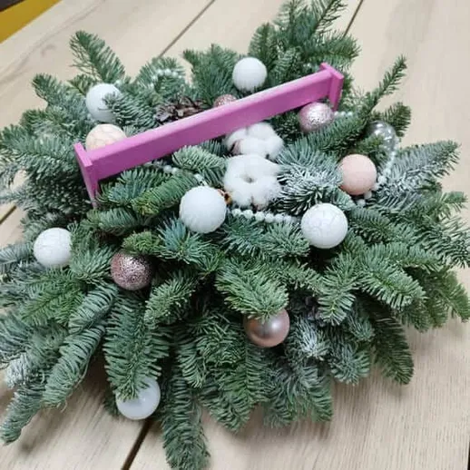 Нобилис – благородная пихта из Дании, используется для создания новогодних венков и композиций, потому что очень приятно пахнет и не осыпается, композиция может храниться несколько месяцев и даже до года при правильном хранении.