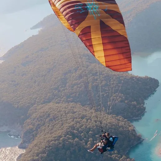 Благодаря открытой конструкции парапалана Вы находитесь прямо воздухе. Более того, конструкция параплана на двоих подразумевает, что вы находитесь впереди пилота, и ничего не загораживает обзор. Нет шума винта, как на самолете или дельталете, и Вы просто наслаждаетесь бесшумным парением в небе - такие эмоции надо испытать обязательно!