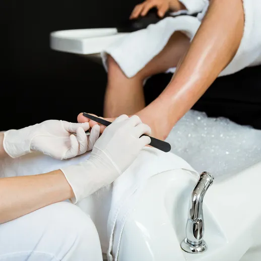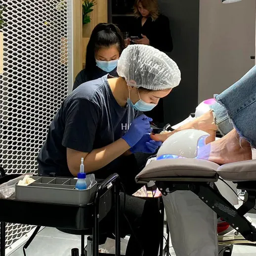 Выполняется обработка кожи стоп, удаление кутикулы и придание формы ногтям классическим, аппаратным или комбинированным методом.