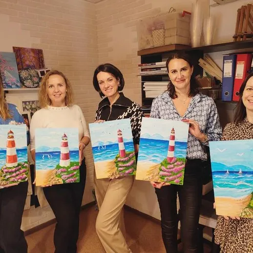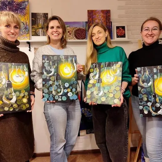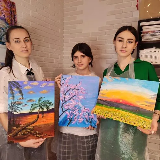 Вы можете выбрать различный вариант из расписания арт-школы: Нарисовать картину акрилом на холсте.