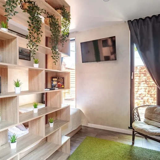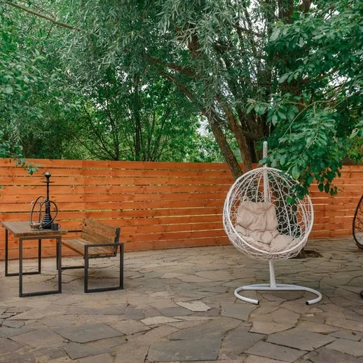 На уютной территории есть деревья, лавочки, подвесные коконы, мангал и беседка. Вы можете воспользоваться велосипедом-тандемом или понаблюдать за звездами через телескоп, а в шаговой доступности ( 1 мин пешком) красивое озеро и лес! Также Вы можете приобрести такие дополнительные услуги как: романтический ужин, конные прогулки, катание на лодках по озеру или фотосессию.
