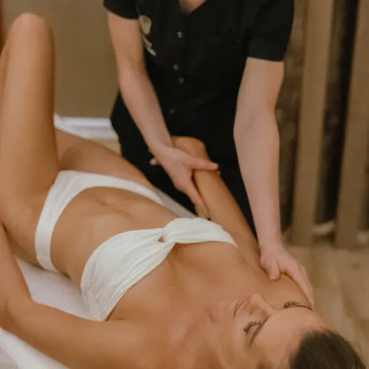 Процедура состоит из трёх этапов - разгона лимфы, антицеллюлитного массажа и обёртывания. Мы делаем обёртывание на все проблемные зоны: руки, бёдра, живот, ягодицы.