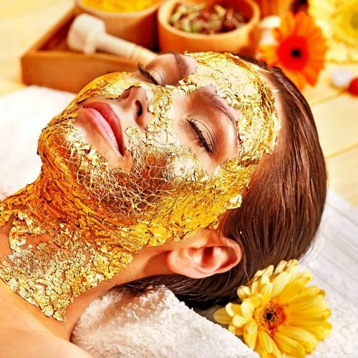 Такой праздник для кожи лица открывает бережное очищение лосьоном от внешних загрязнений, а затем более глубокое очищение с использованием скраба с частичками золота. Эти процедуры подготавливают кожу лица для нанесения маски с 24-каратным золотом. Следом за ней Вы наслаждаетесь прекрасным расслабляющим массажем головы и лица с последующим нанесением “золотой” сыворотки. Завершающая процедура - нанесение крема “Золотой коллаген” для защиты и сияющего вида.
