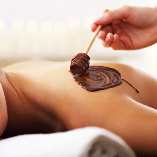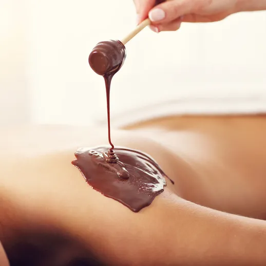 Предлагаем попробовать самую вкусную косметическую процедуру. Шоколад является ценным источником витаминов и микроэлементов. Он обладает уникальными увлажняющими, питательными и тонизирующими свойствами. Помимо положительного воздействия на кожу, шоколад является антидепрессантом для нервной системы, способствует выработке гормонов удовольствия дофамина и серотонина. Натуральное нерафинированное какао-масло нежно тает на коже и дарит выраженный лифтинг-эффект.