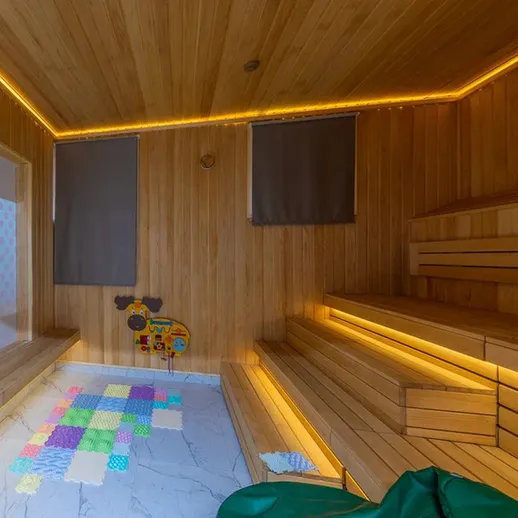 Просторная акватермальная зона с купелями разной температуры, разнообразные парные, включая шоу-парную с уникальной печью; два хаммама, соляная комната, ресторан с разнообразными блюдами, уютные зоны отдыха.