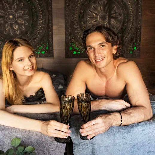 Это не просто спа — это церемония, посвящённая вашей любви. Вас ждёт омовение ног с лепестками роз, мягкий хамам, 90 минут аюрведического массажа с горячим арома-маслом, насыщенным афродизиаками, и особый ритуал манифестации чувств. Всё завершится чайной церемонией и бокалом шампанского. Здесь каждая деталь создана, чтобы вы снова сказали друг другу: «Я тебя люблю».