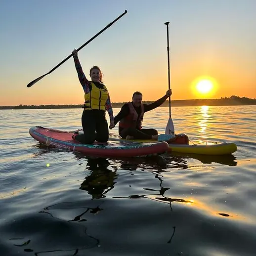 Представьте: вы скользите по воде, солнце медленно уходит за горизонт, окрашивая небо и водохранилище в тёплые тона. SUP-прогулка на закате — это возможность перезагрузиться, отвлечься от забот и насладиться красотой момента. Короткий маршрут, спокойная вода, сопровождение инструктора — подходит и взрослым, и детям. Идеально для романтического свидания, встречи с друзьями или семейного вечера. Всё оборудование, инструктаж и поддержка включены.
