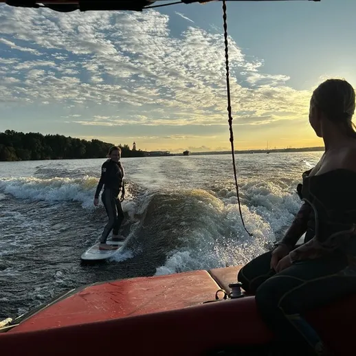 Представьте: вы на доске без креплений, катер создаёт идеальную волну, и вы скользите по ней, держась за фал… а потом отпускаете и едете сами. Это вейксёрф — спорт, где каждый может поймать свою волну. Перед стартом — обязательный инструктаж на пирсе: новичкам помогут сгруппироваться, опытным — разобрать технику трюков. Администратор подберёт оборудование, выдаст жилет — и вперёд, ловить волну. Драйв, свобода и полный контакт с водой.