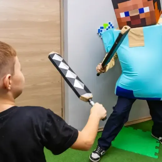 Любимая игра оживает! Выездной квест по мотивам Minecraft перенесёт детей и взрослых в мир кубов, крафта и приключений. Вас ждут актёры, электронные загадки, поиск сокровищ, сражения со злодеями и, конечно, главный герой — Стив. Играем где угодно: в квартире, на даче, в офисе или на природе. Мы приедем, за полчаса подготовим площадку, проведём игру и уберём за собой. Идеально для дня рождения, выпускного или встречи с друзьями.