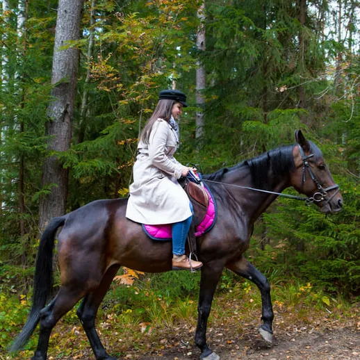 Верховая езда – настоящее приключение на природе, хоть и со сопряженное со значительными физическими нагрузкам. Все усилия быстро оправдываются сплошной пользой для организма. Укрепление мышечного каркаса, повышение силы духа наездника гарантированно. К плюсам также можно отнести: