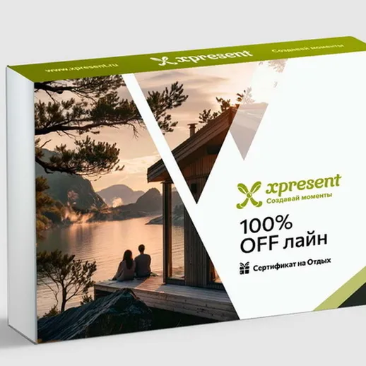 Полный перезагруз: отдых там, где нет суеты и интернета. Только вы и природа. Получатель сам выбирает город, дату и отель в уединённых локациях без лишнего шума.